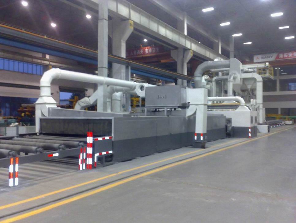鋼板預處理線主要是指鋼材在加工前(即原材料情況)進行表面拋丸除銹并涂上一層維護底漆的加工能力。它也是通過式拋丸機的一種,鋼材經過預處理可以提升機械產品和金屬構件的抗腐蝕能力,提升鋼板的抗疲勞性能,延伸鋼板的使用壽命,一起還可以優化鋼材表面能力制造情況,有利于數控切割機下料和精密下料。此外,由于加工前鋼材形狀比照規則,有利于機械除銹和自動化噴漆,因而選用鋼材預處理可大大提升清理工作的功率,減輕清理工作的勞動強度和對環境的污染。